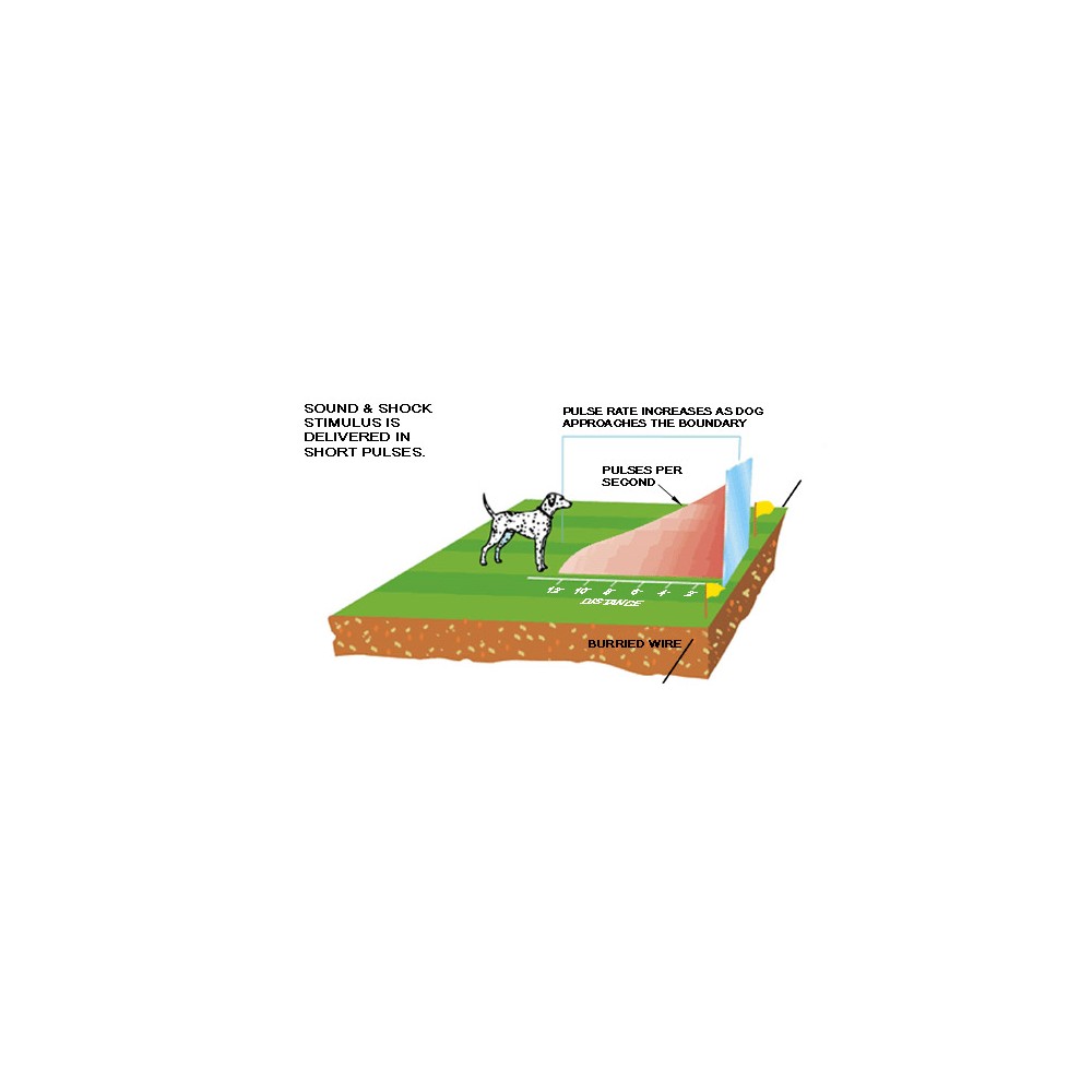 A vezetéket a föld alatt pár centire kell leásni, körbevéve vele a védendő területet/területeket. A különálló területek között a vezetéket összesodorva visszük tovább, így a 2 ellentétes rádióhullám kioltja egymást és ott az állat közlekedhet. A kutya számára zászlókkal kell jelezni a számára tiltott területet. (1-2 hét után eltávolítható). Ha a kutya megközelíti a védendő területet, sípoló hangot hall, minél közelebb megy, annál sűrűbb a sípolás, és a nyakörv lead egy tanító jellegű elektromos impulzust.